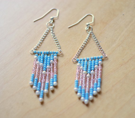 Turquoise Clear Silver Pearl Pastel Baby Pink Seed Beaded Earrings