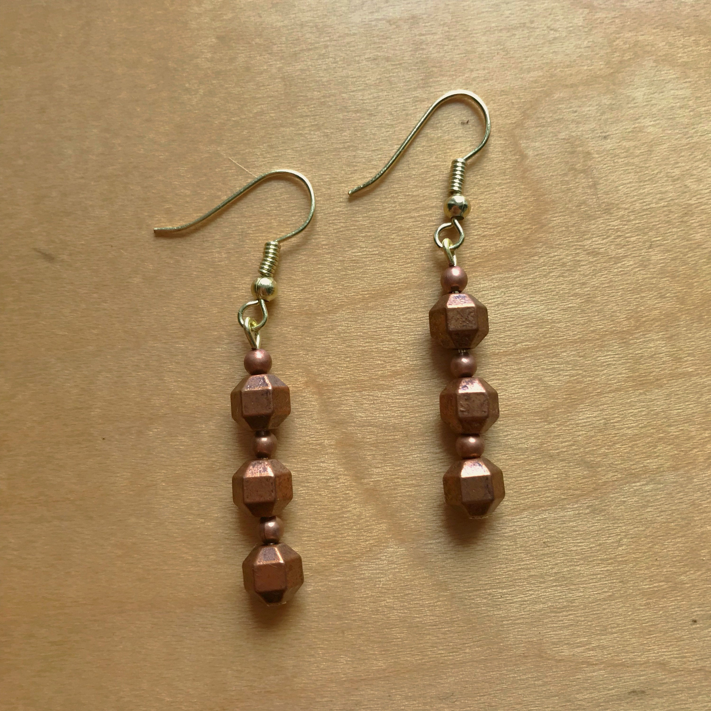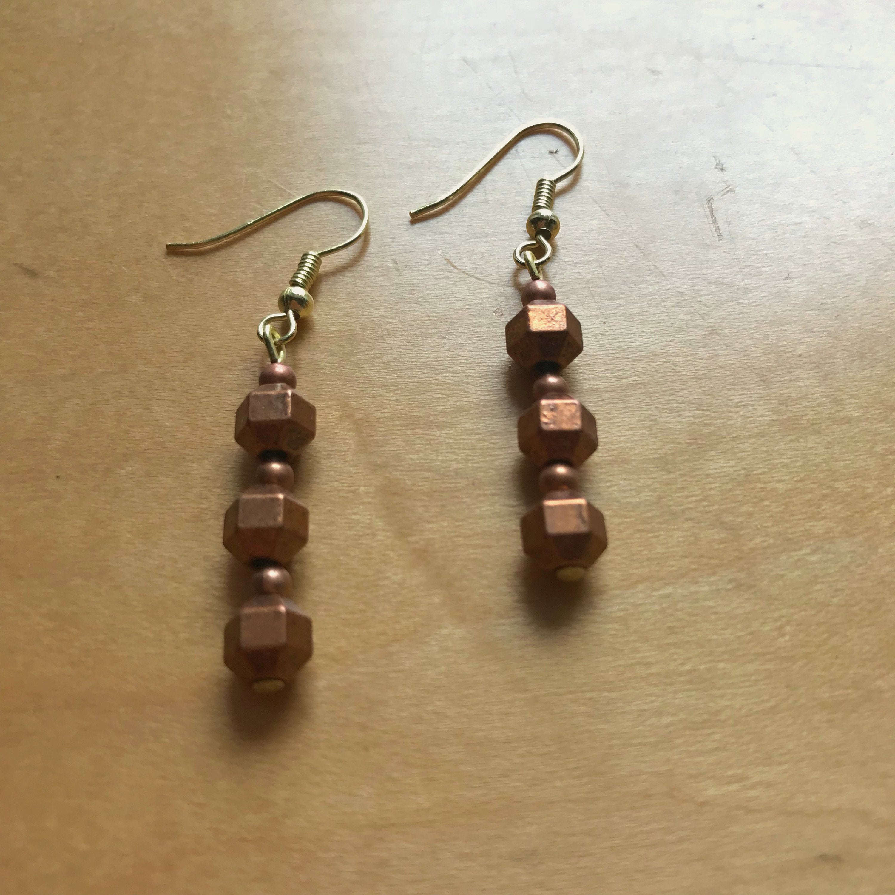 Copper bead drop earrings, Copper dangle earrings, Copper beaded earrings, Copper Drop Earrings, Copper geometric bead, copper round bead