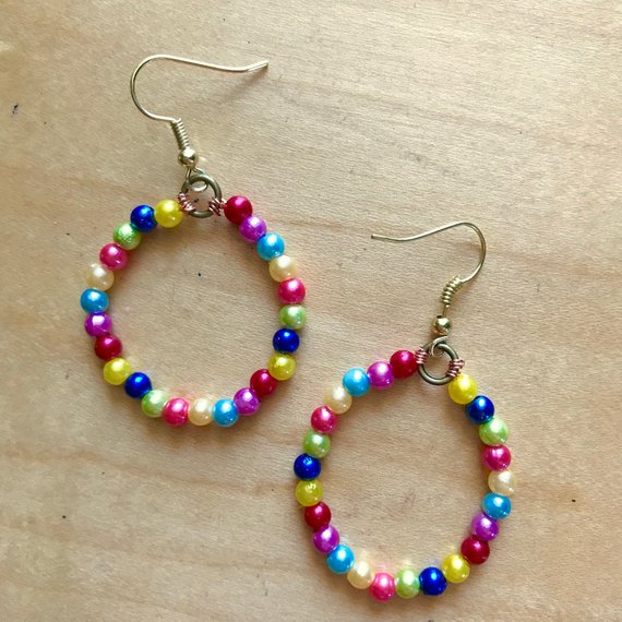 Multi-Colored Rainbow Colorful Bead Tear Drop Earrings
