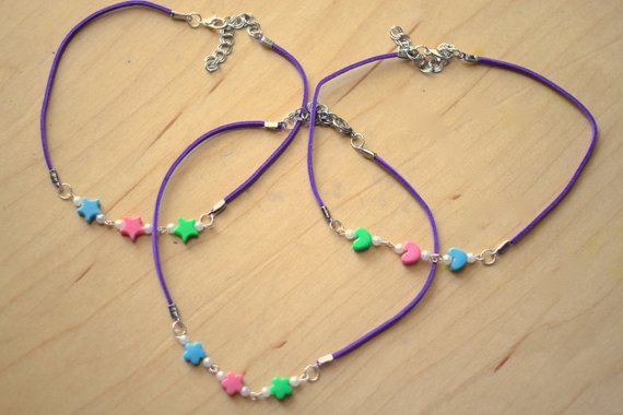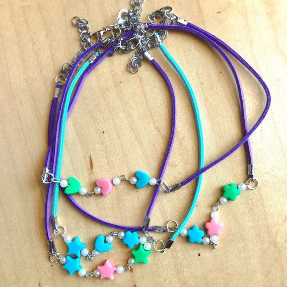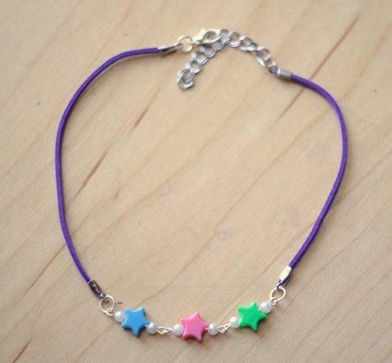 ? Suede cord with three Kandi beads (blue, pink, and green)