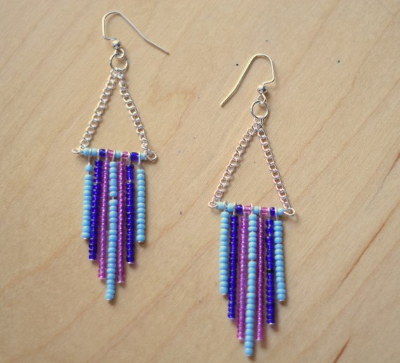 Turquoise Blue Pink Purple Indigo Silver Seed Beaded Earrings