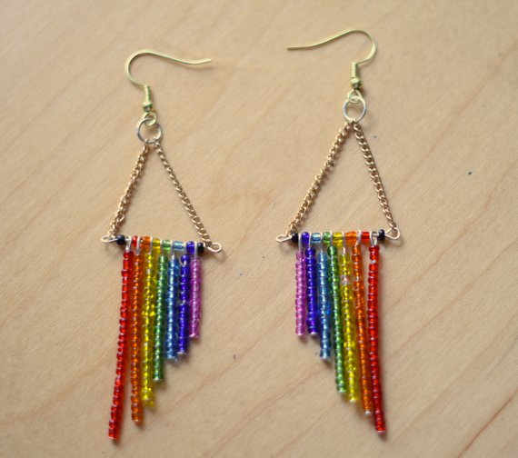 Rainbow Multi-Colored Colorful LGBTQ Pride Gold Seed Beaded Earrings