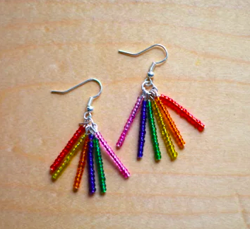 Rainbow Multi-Colored Colorful LGBTQ Pride Gold Seed Star Burst Beaded Earrings