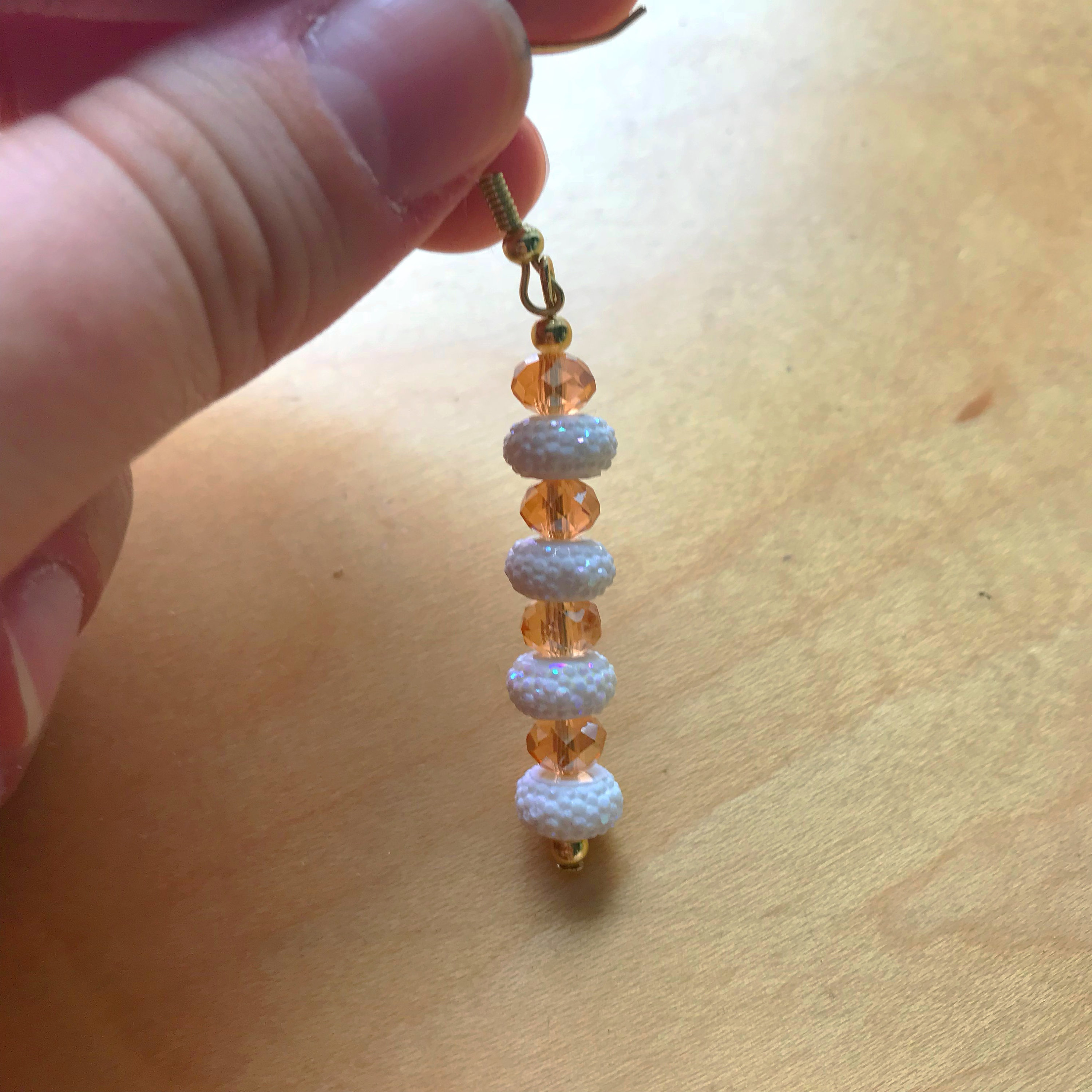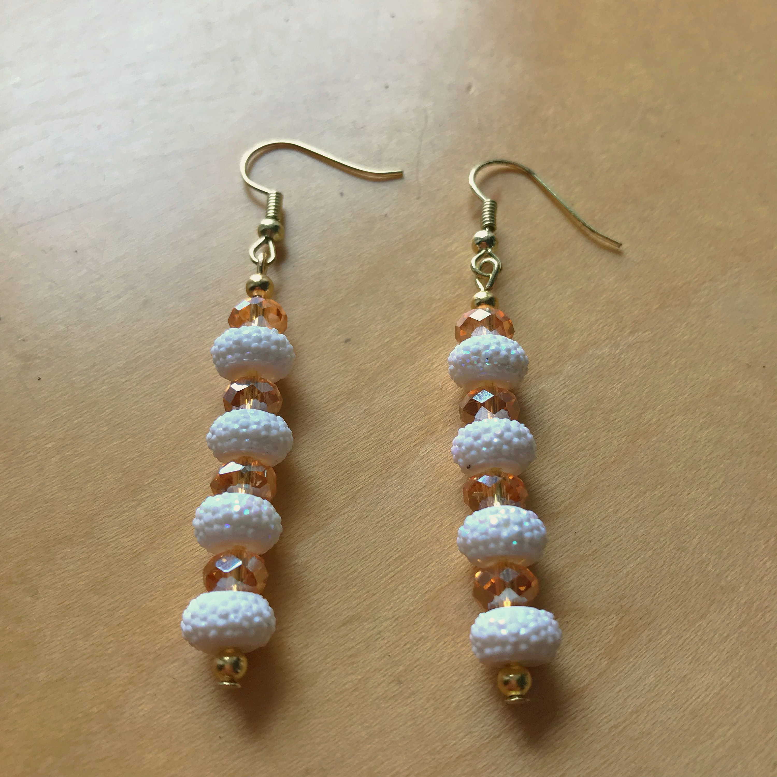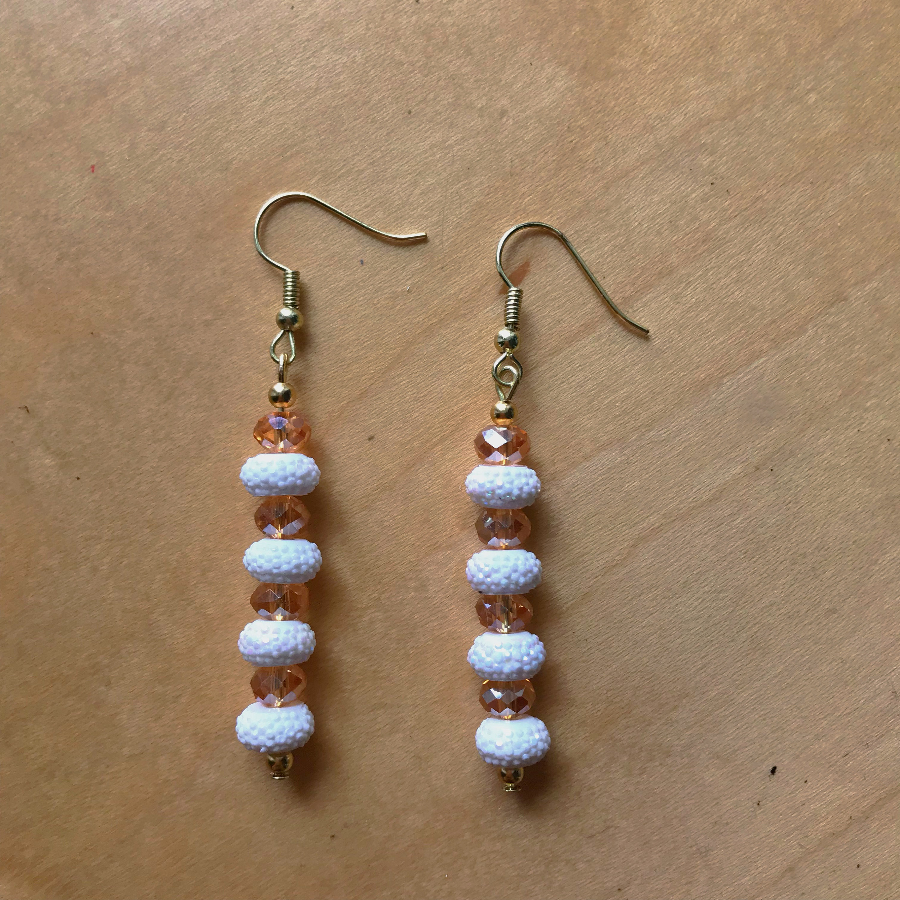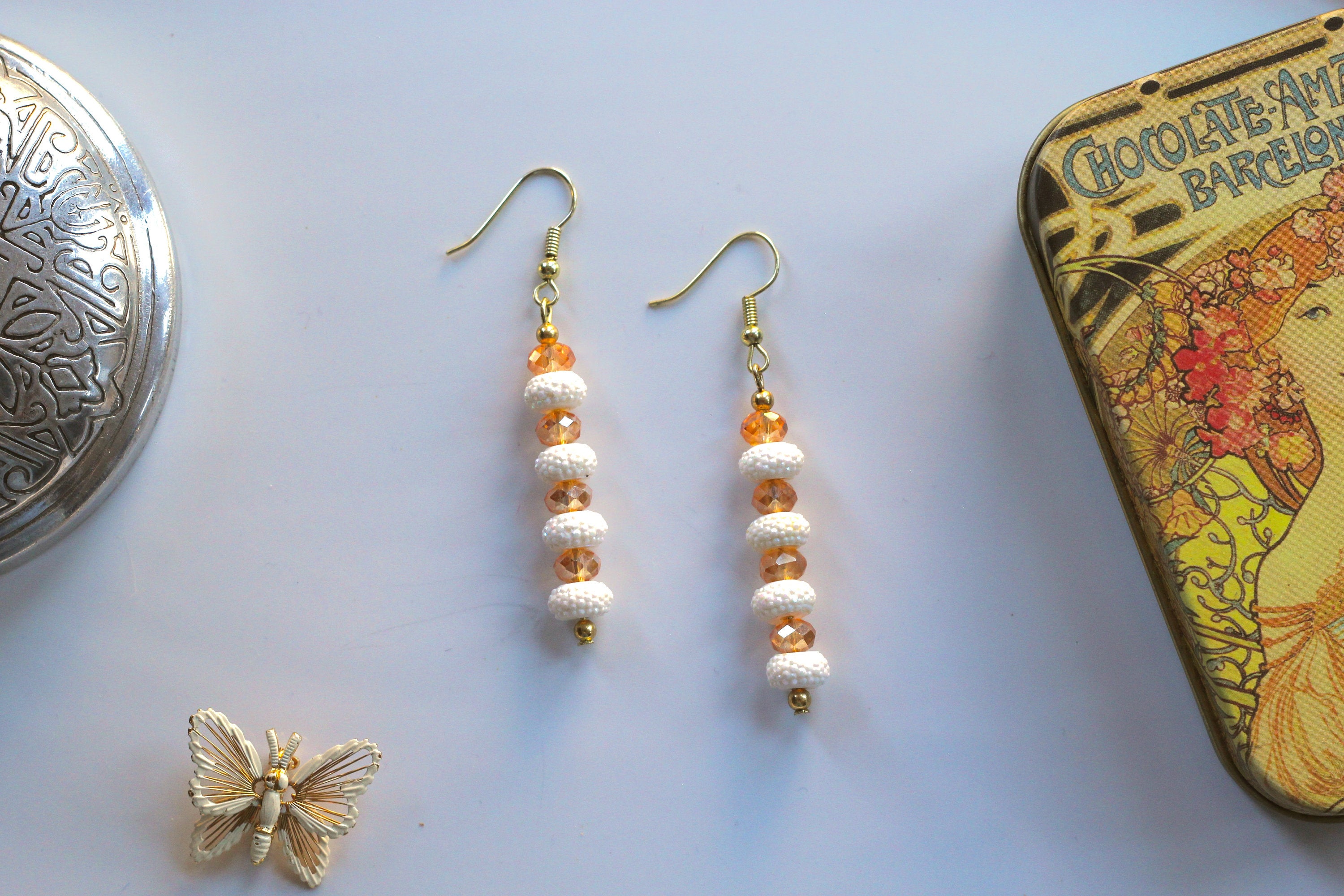 White and Rose Gold Dangle Earrings, White Rose gold Drop Earrings, Beaded drop earrings, Rose gold drop bar, Beaded dangle earrings
