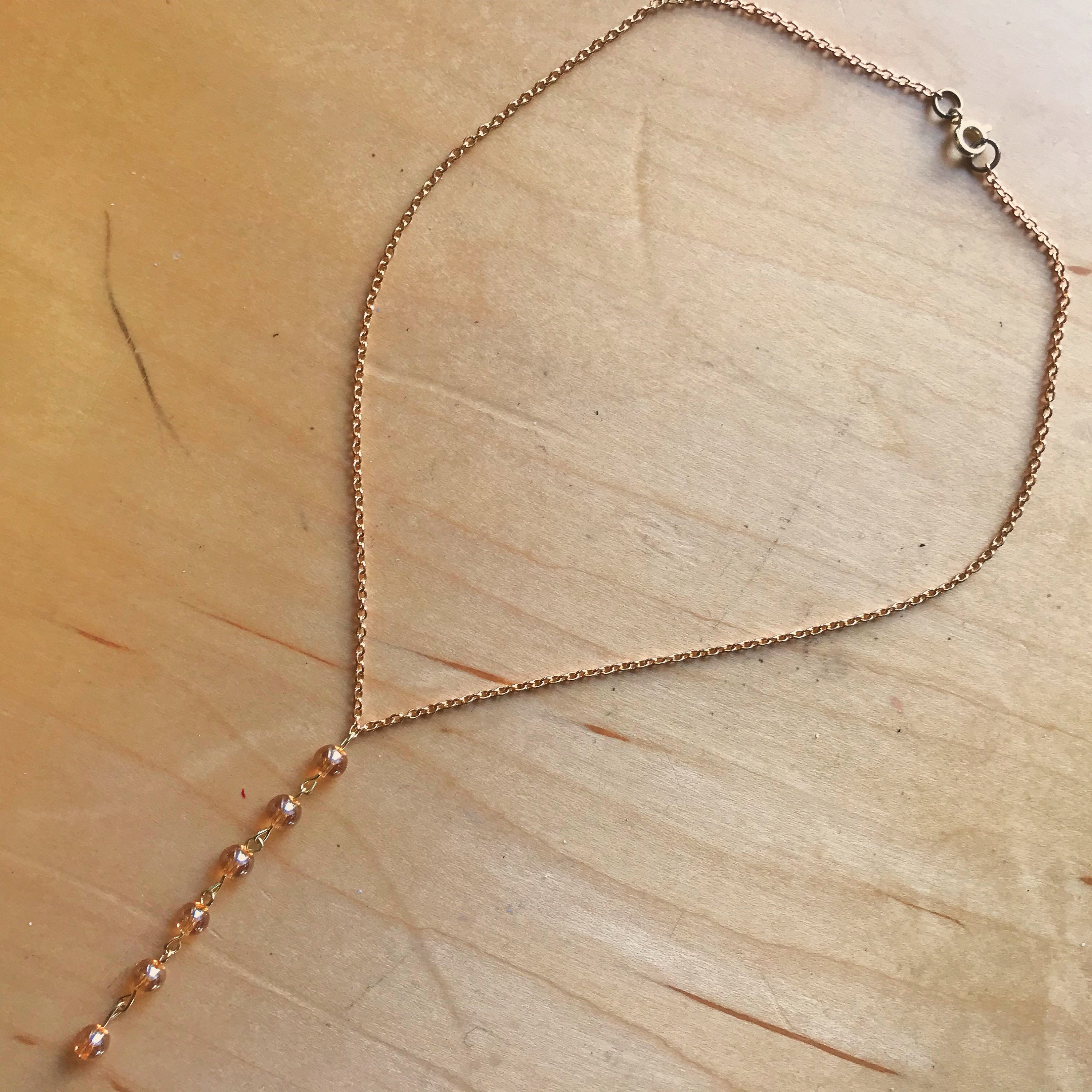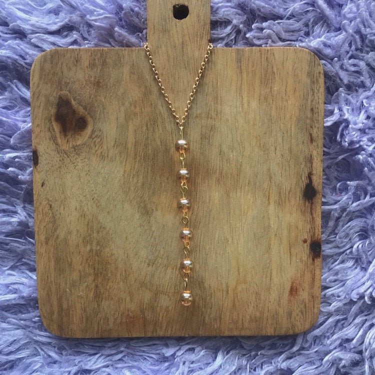 Gold Chain Gold Rose Gold Round Glass Bead Y Lariat Necklace