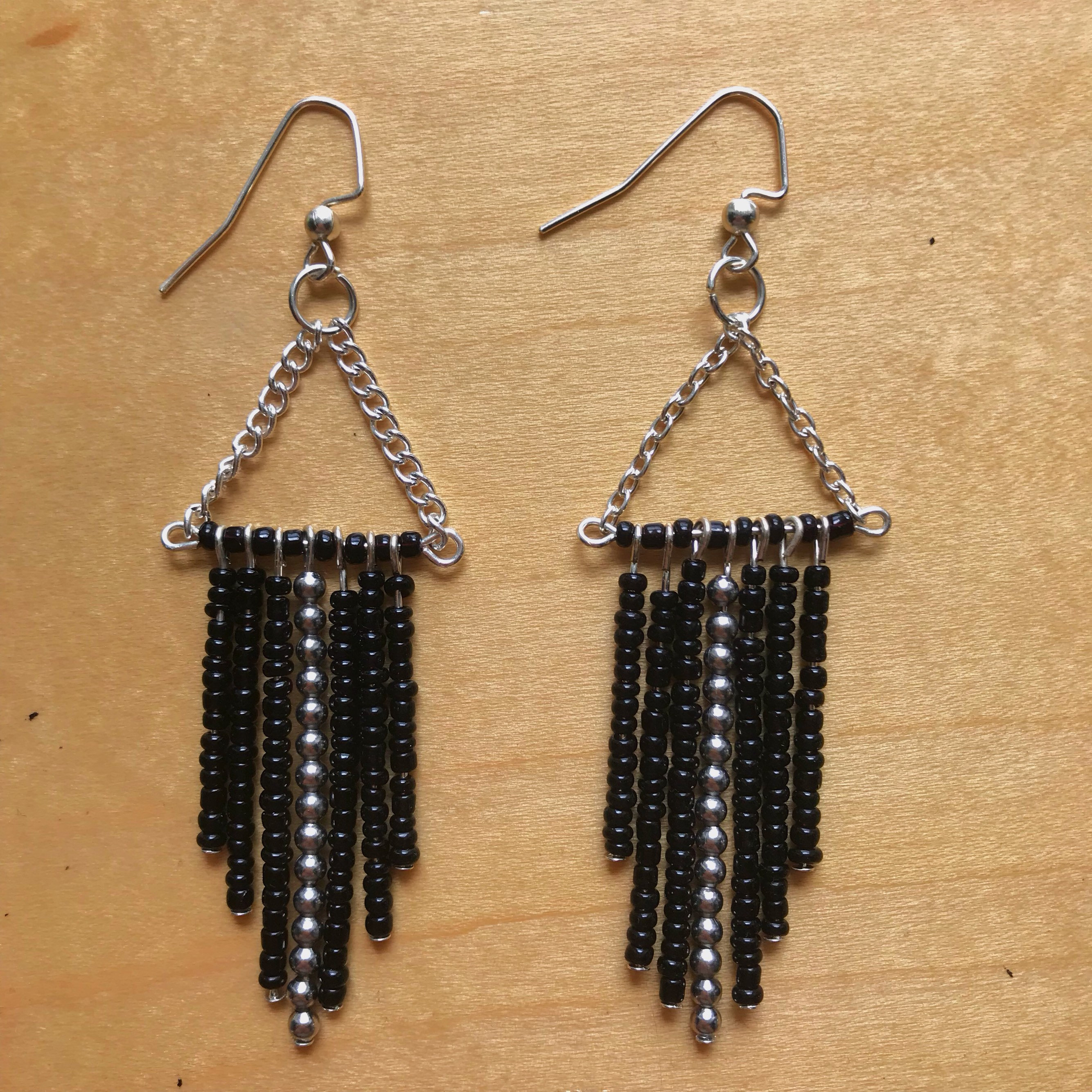 Black Silver Bead Earrings, Seed beaded, Halloween Earrings, Chandelier Bead Earrings, Black Silver Seed bead earrings, Bead Dangle earring