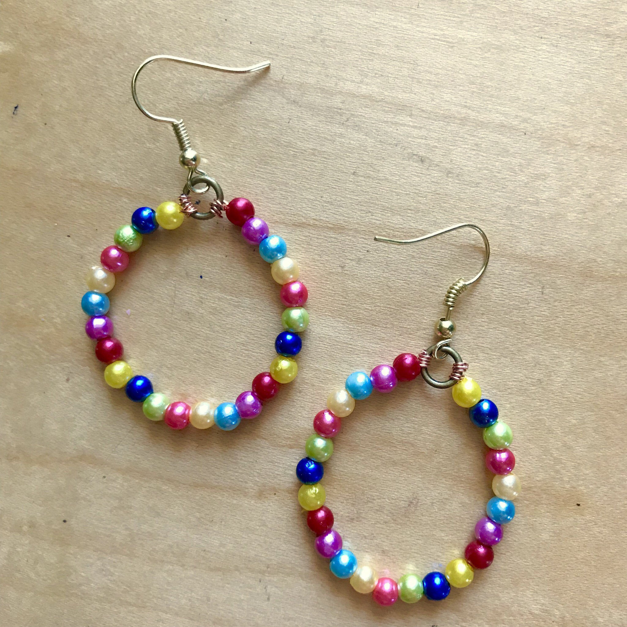 Tear drop earrings, Rainbow earrings, Beaded earrings, Seed Beaded hoops, Seed bead, Irridescent Beads, Hoop earrings, Seed bead tear drops
