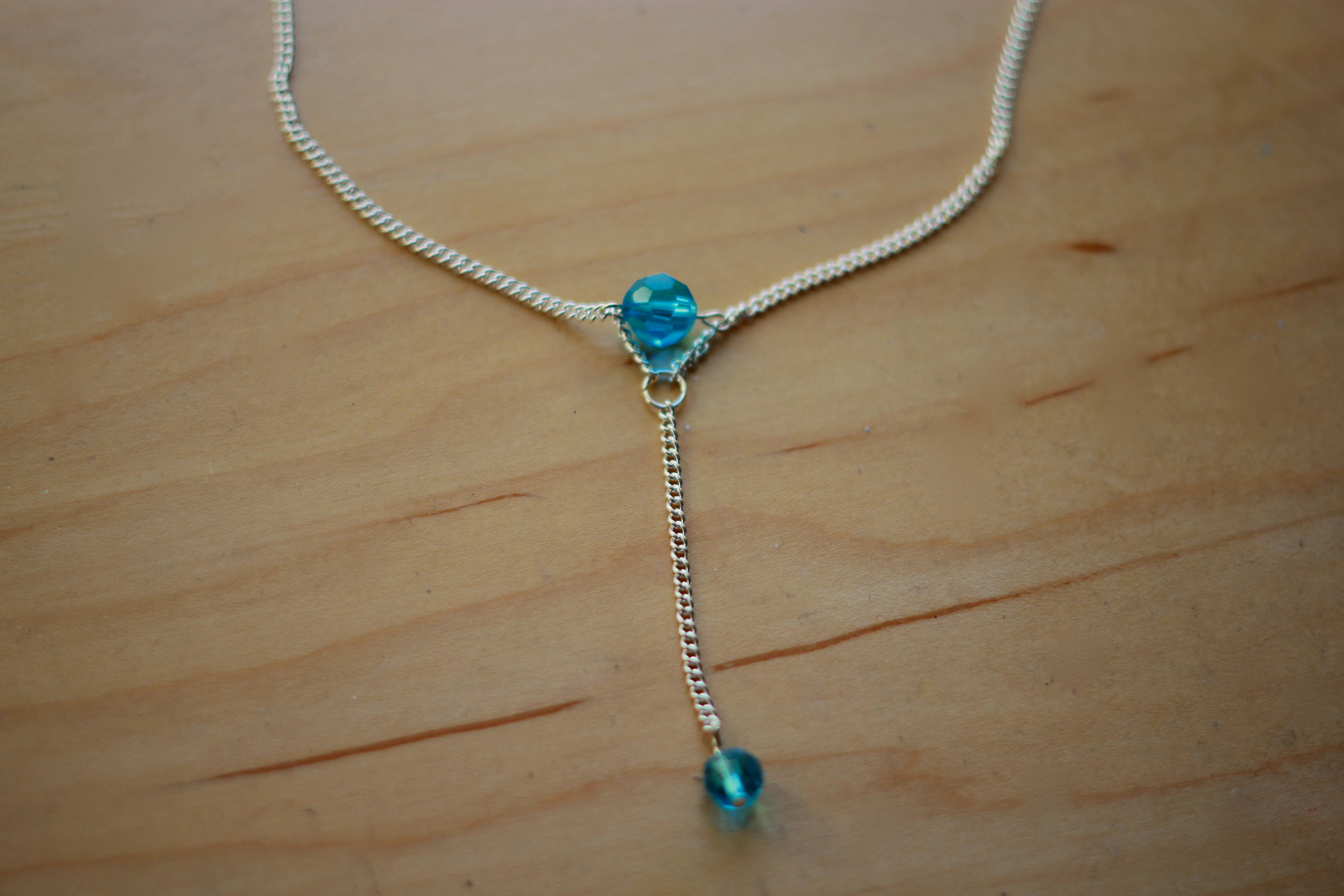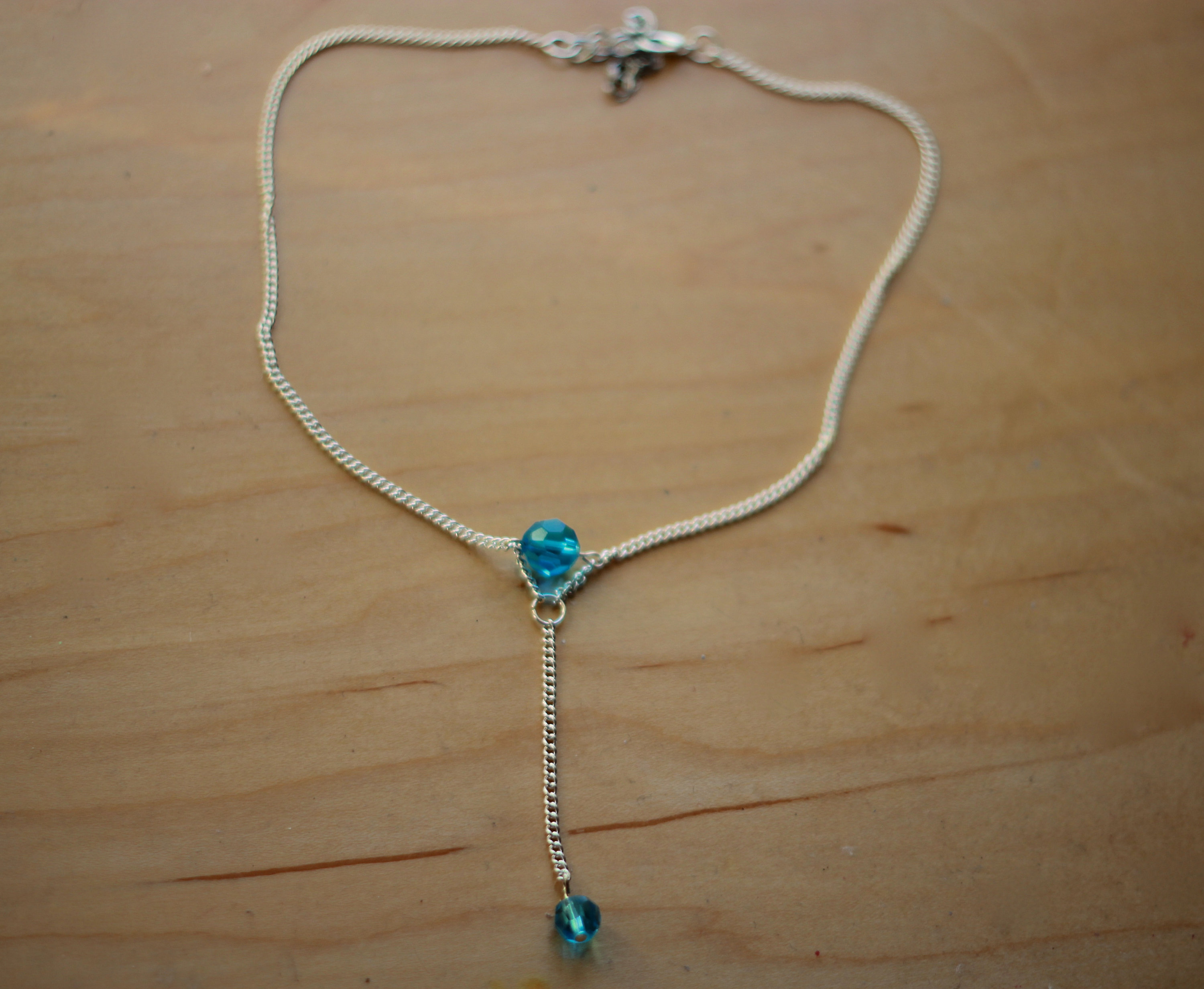 Silver Y necklace, Silver Y choker, Glass Bead Y necklace, Bead Y choker, Blue Y accent, Y pendant, Bar necklace, Turquoise choker