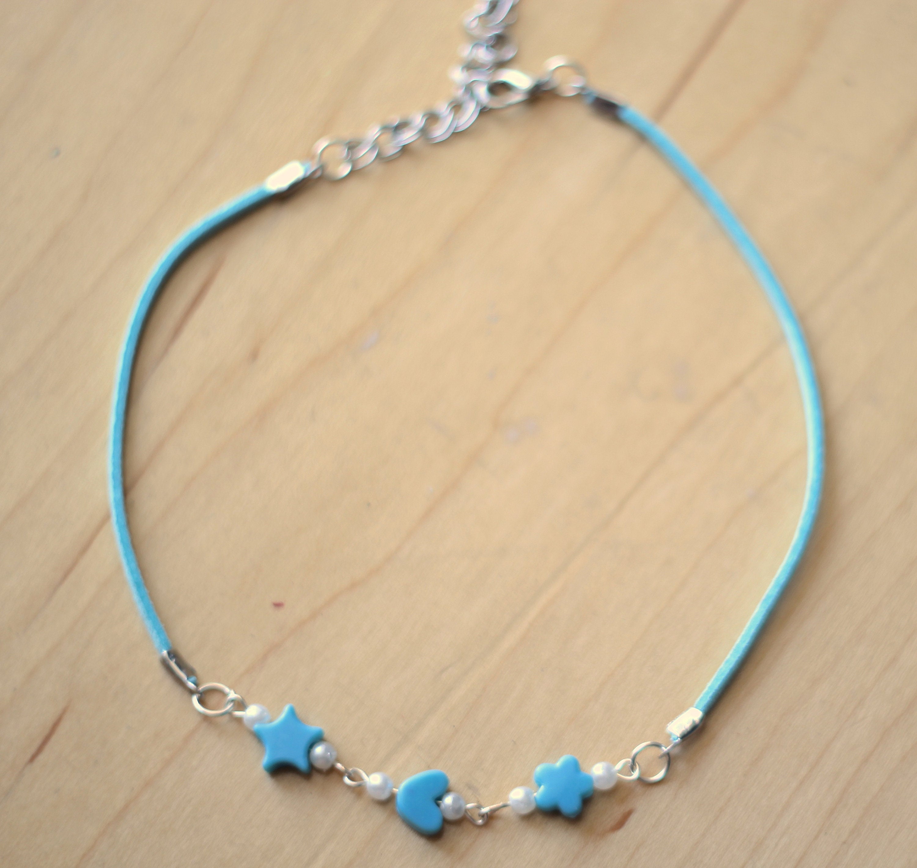 • Suede cord with three Kandi beads (star, heart, and flower)