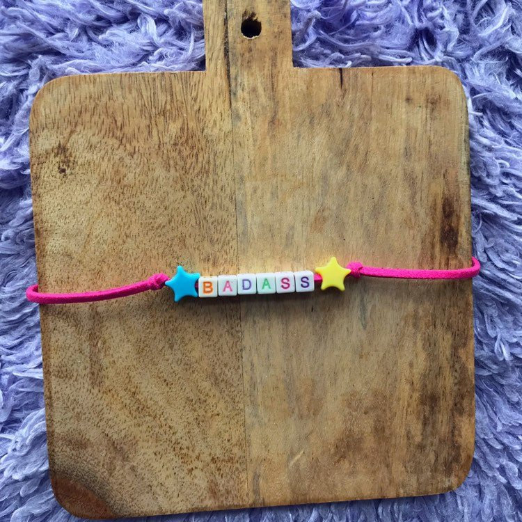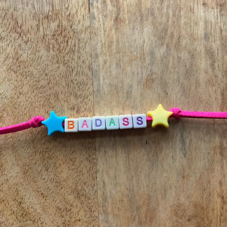 Badass Kandi Letter Bead Star Charm Pink Suede Strap Choker Necklace